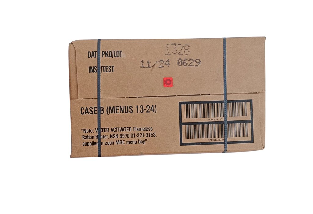 Krabice potravinových dávek MRE obsahuje klasickou bojovou potravinovou dávku americké armády určenou pro stravování v polních a bojových podmínkách. Menu B přináší dvanáct různých hlavních jídel známých z amerických armádních přídělů. Každé balení je hermeticky uzavřené, připravené k okamžité konzumaci nebo ohřevu pomocí chemického ohřívače. Taková zásoba jídla dává smysl všude tam, kde není kuchyně ani čas řešit vaření – v terénu, na expedici nebo jako součást krizové výbavy.