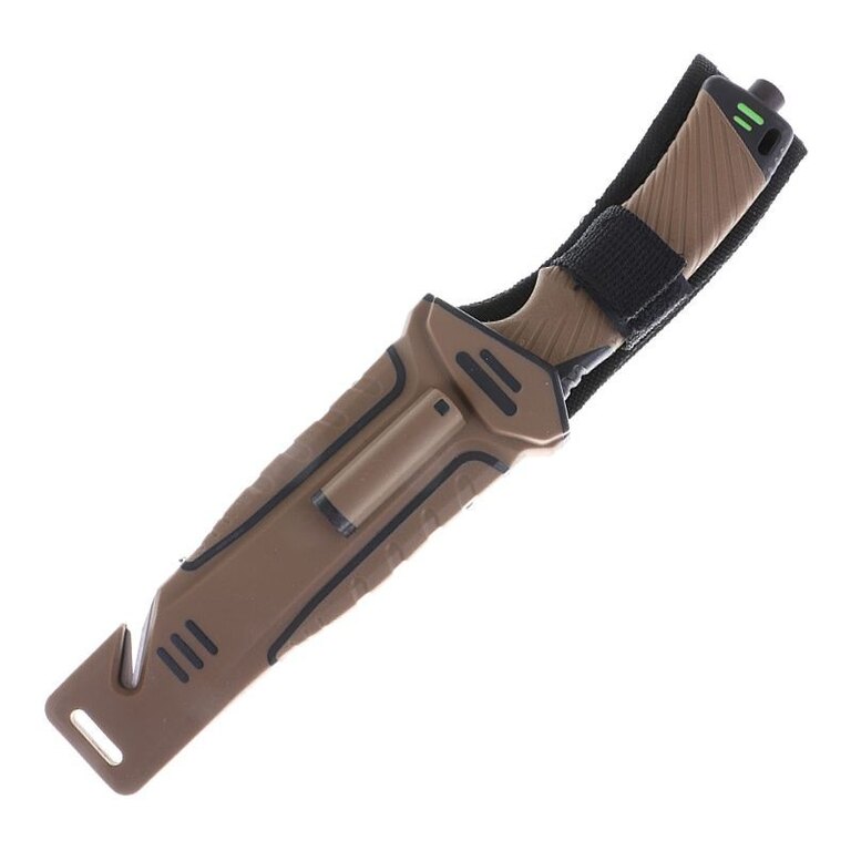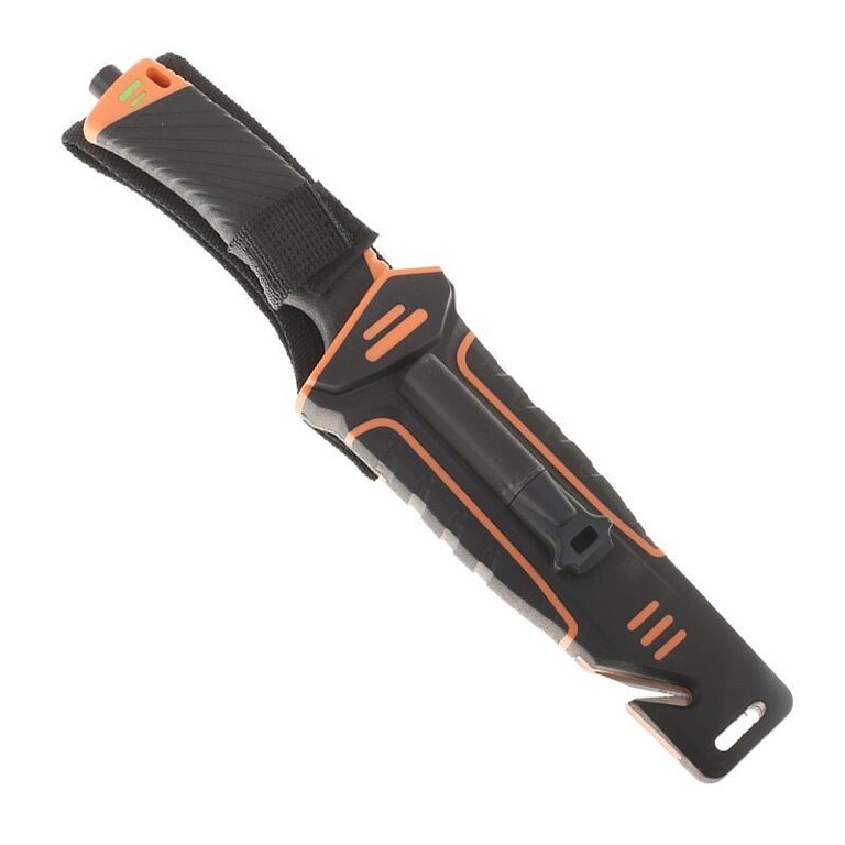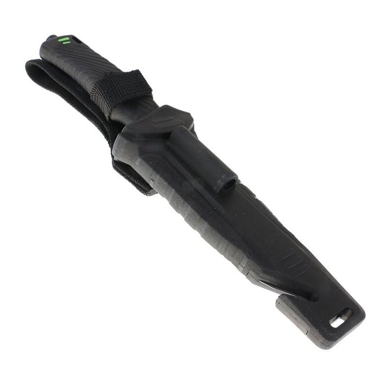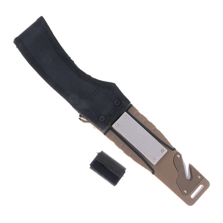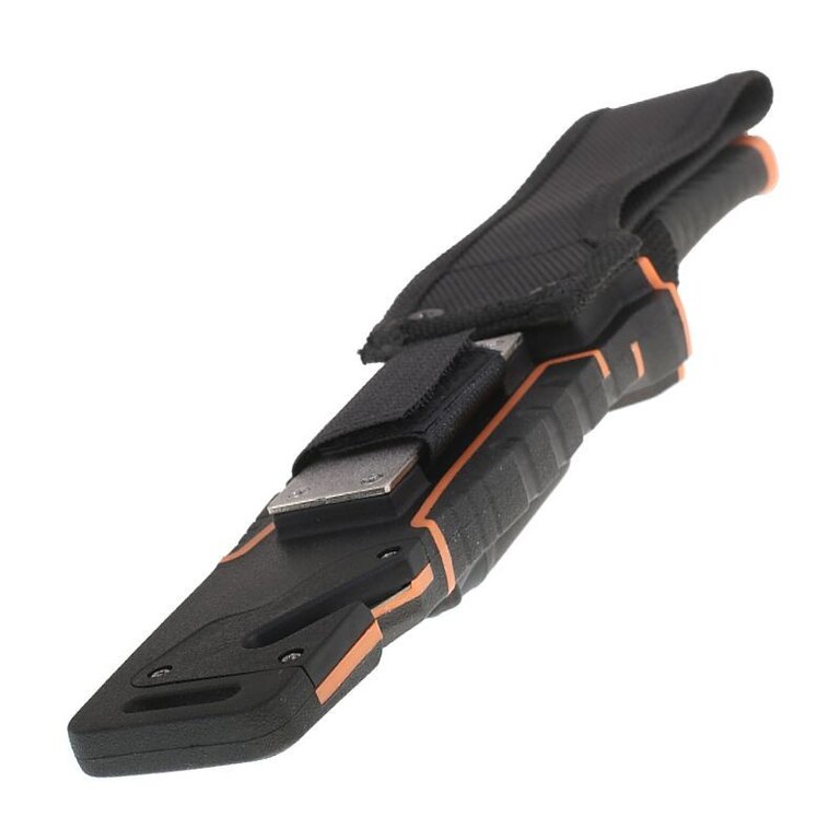 Nůž je dodáván s pouzdrem z ABS plastu v kombinaci s Cordurou. Kromě toho, že umožňuje komfortní nošení nože na opasku, skrývá ještě další překvapení. Na vnější straně pochvy je uchyceno magneziové křesadlo, kterým můžete rozdělat oheň, nebo zapálit plynový vařič. Na spodním okraji pouzdra se nachází řezák na bezpečnostní pásy, popruhy, nebo provazy. Na zadní straně pouzdra je praktický brousek s diamantovým povlakem, chráněný suchým zipem.