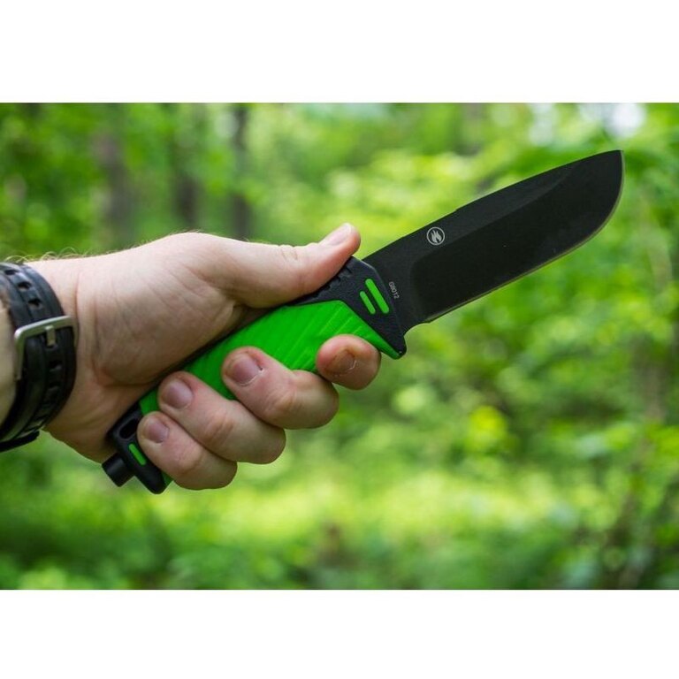 Kvalitní nerezová ocel ocel 7Cr17 v kombinaci s 5 mm silnou čepelí s plným ostřím jasně definují, pro co byl nový nůž Ganzo stvořen. Sekání a štípání dřeva pro něj nepředstavují žádný problém a stejně dobře obstojí při porcování masa nebo nouzových operacích. Ostří o délce přes 11 cm poskytuje dostatečný komfort při používání. Zajímavostí je, že čepel je plně odnímatelná z rukojeti - stačí odšroubovat zadní matici. Za zmínku stojí také speciální profil na horním okraji čepele, připravený pro použití pazourku.