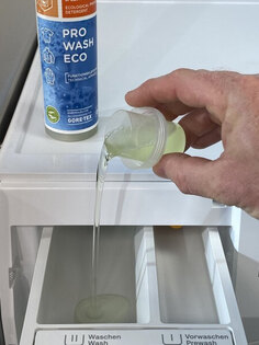Pro Wash Eco Fibertec je koncentrovaný prací prostředek určený pro šetrné praní funkčního oblečení. Vhodný je pro materiály jako Gore-Tex, softshell, fleece, peří a další membránové či prodyšné tkaniny, u kterých pomáhá zachovat jejich vlastnosti.